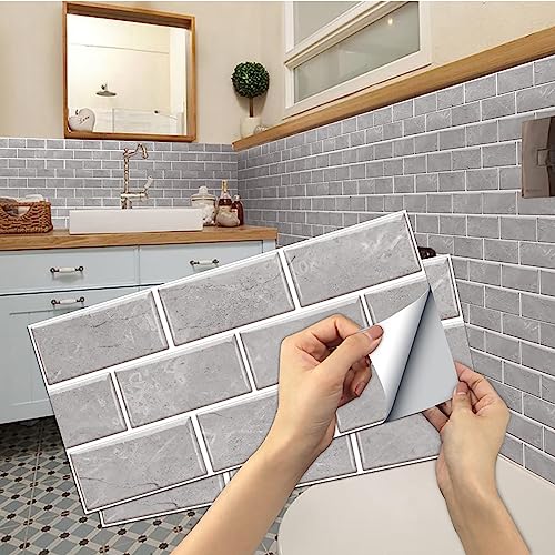 Arthome 44cmx6m Gris Brique Auto Adhesif Papier Peint, Peel and Stick Contact Papier, Vinyle Film PVC imperméable pour le revêtement mural des dosserets cuisine et cheminée