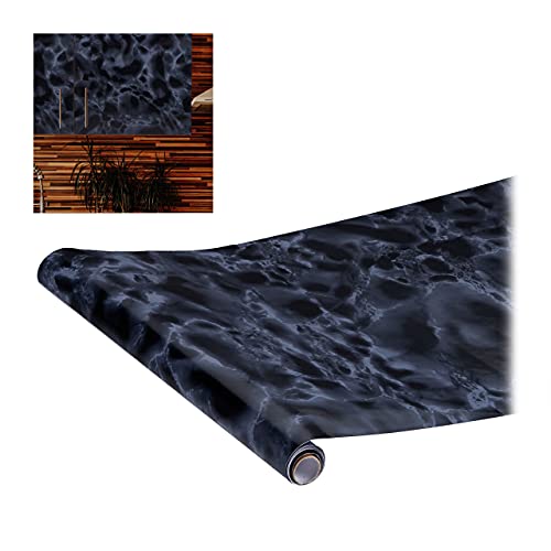 FunStick 60CMx5M Papier Peint Adhesif Meuble Marbre Papier Peint Adhesif PVC Mural Salle de Bain Salon Noir Imperméable Revetement Adhésif Meuble Marbre Noir Vinyle Adhésif Plan de Travail Cuisine