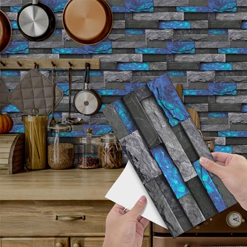 Dalle pvc Adhesive Murale Brique Bleue Claire Credence Adhesive pour Cuisine Carrelage Adhesif Mural Cuisine Carrelage Salle de Bain Revetement Mural Adhesif Credence Autocollante 15x30cm/40 Pcs