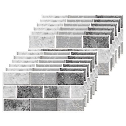 Stickers Carrelage Cuisine, 12 pièces Autocollant en Tuile Auto-Adhésif Sticker Imperméable en PVC Autocollants de Carreaux Carrelage Mural pour Salle de Bains