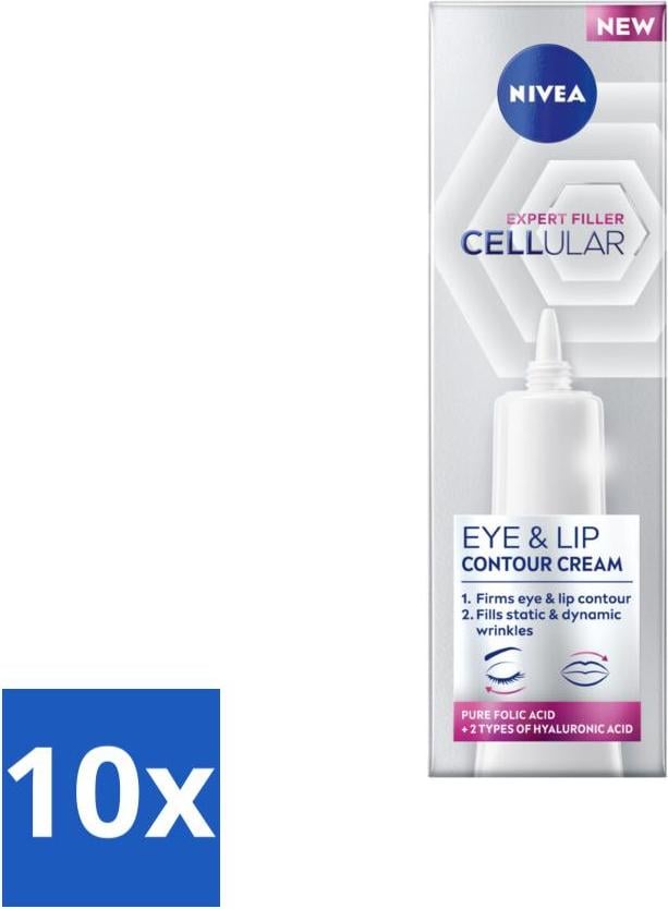 NIVEA - Crème Contour des Yeux - CELLular Expert Filler Anti-Aging - Pour la peau vieillissante - Avec acide hyaluronique & acide folique pur - 15 ml - Pack avantage - 10 pièces