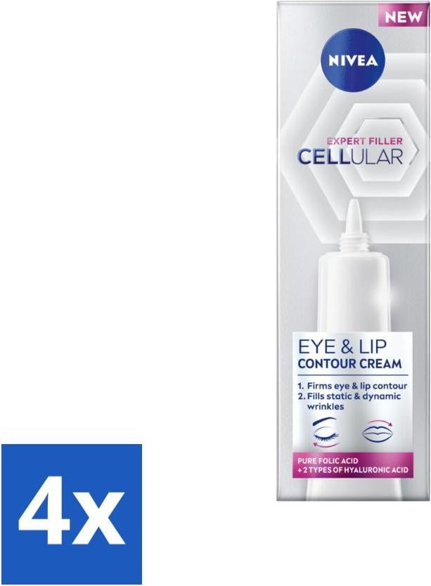 NIVEA - Crème Contour des Yeux - CELLular Expert Filler Anti-Aging - Pour peaux vieillissantes - Avec acide hyaluronique & acide folique pur - 15 ml - Pack avantage - 4 pièces