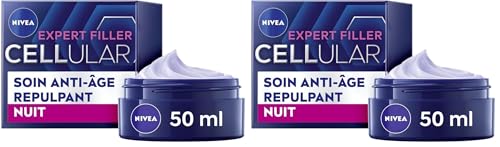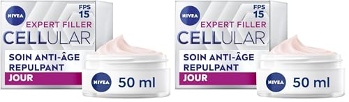 NIVEA CELLULAR Expert Filler Soin de jour FPS15 (1 x 50 ml), Crème visage anti-âge raffermissant enrichi en acide folique pur et acide hyaluronique, Soin repulpant pour peaux matures (Lot de 2)