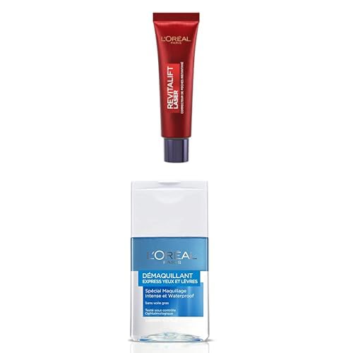 L'Oréal Paris - Duo Regard Parfait - Soin Correcteur Poches Instantané Revitalift Laser (15ml) + Démaquillant Yeux Waterproof (125ml) - Correcteur Instantané & Démaquillage Doux