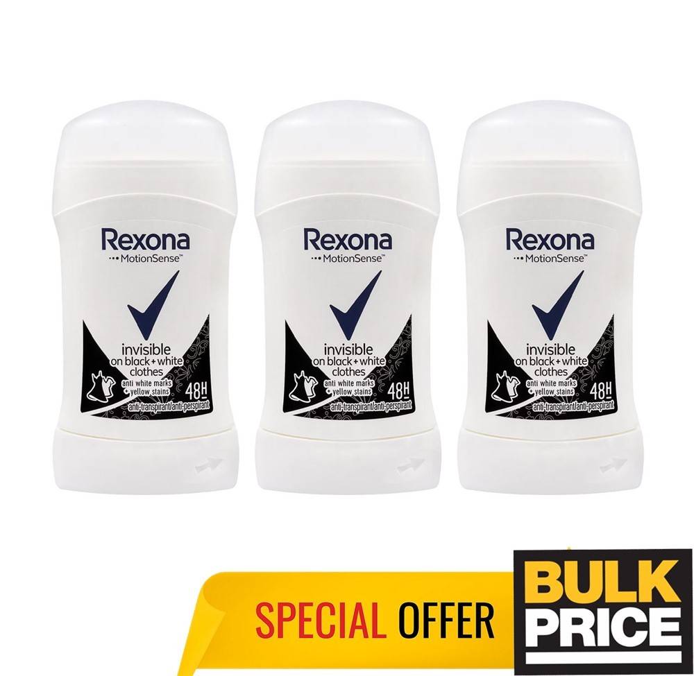 Rexona Women Invisible BW Deodorant Stick 48H Sweat Odor Defense 40ml Pack de 3