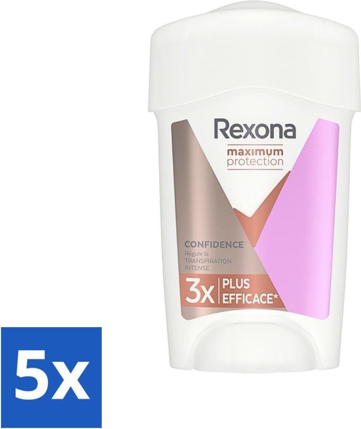 Rexona Women - Déodorant stick - Protection maximale Confiance en soi - Anti-transpirant - 45 ml - Pack avantage - 5 pièces