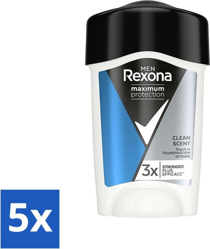 Rexona Men - Déodorant stick - Protection maximale Parfum propre - Anti-transpirant - 45 ml - Pack avantage - 5 pièces