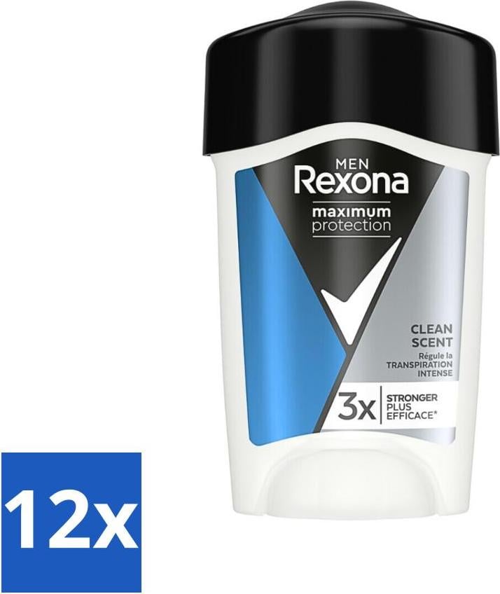 Rexona Men - Déodorant stick - Protection maximale Parfum propre - Anti-transpirant - 45 ml - Pack avantage - 12 pièces