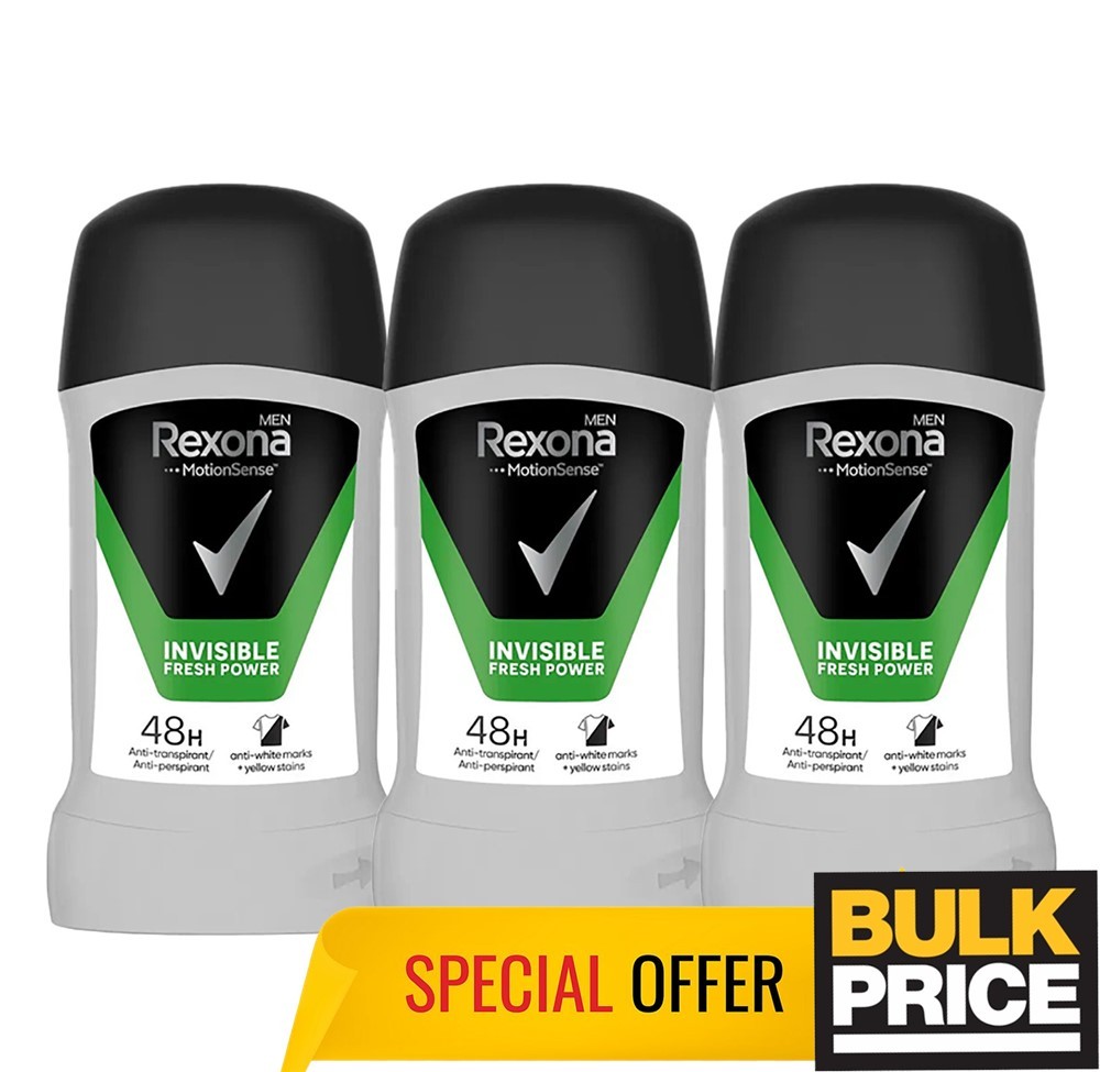 Pack de 3 déodorants anti-taches Rexona Invisible Fresh Power Stick pour hommes