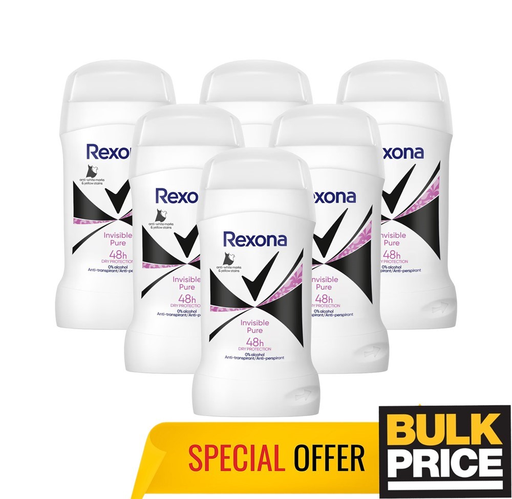 Pack de 6 déodorants Rexona Invisible Fresh Power Stick 48H pour hommes