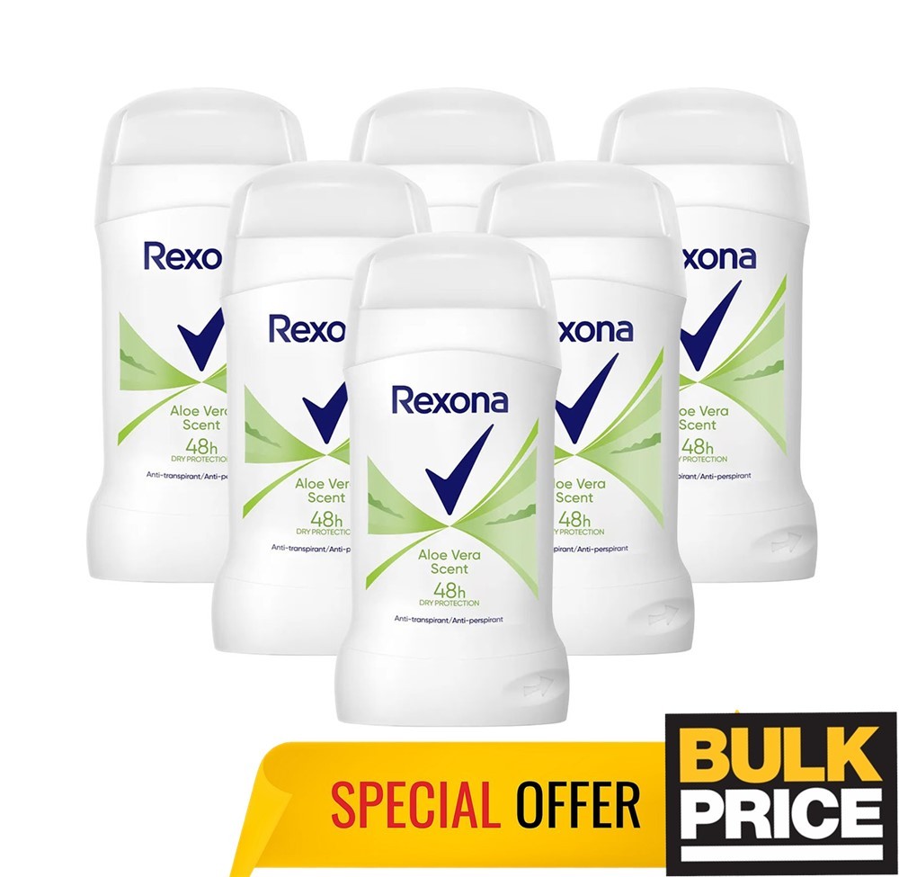 Rexona Aloe Vera Stick Déodorant Long-Lasting 48H Sweat Odor Protection 6-Pack