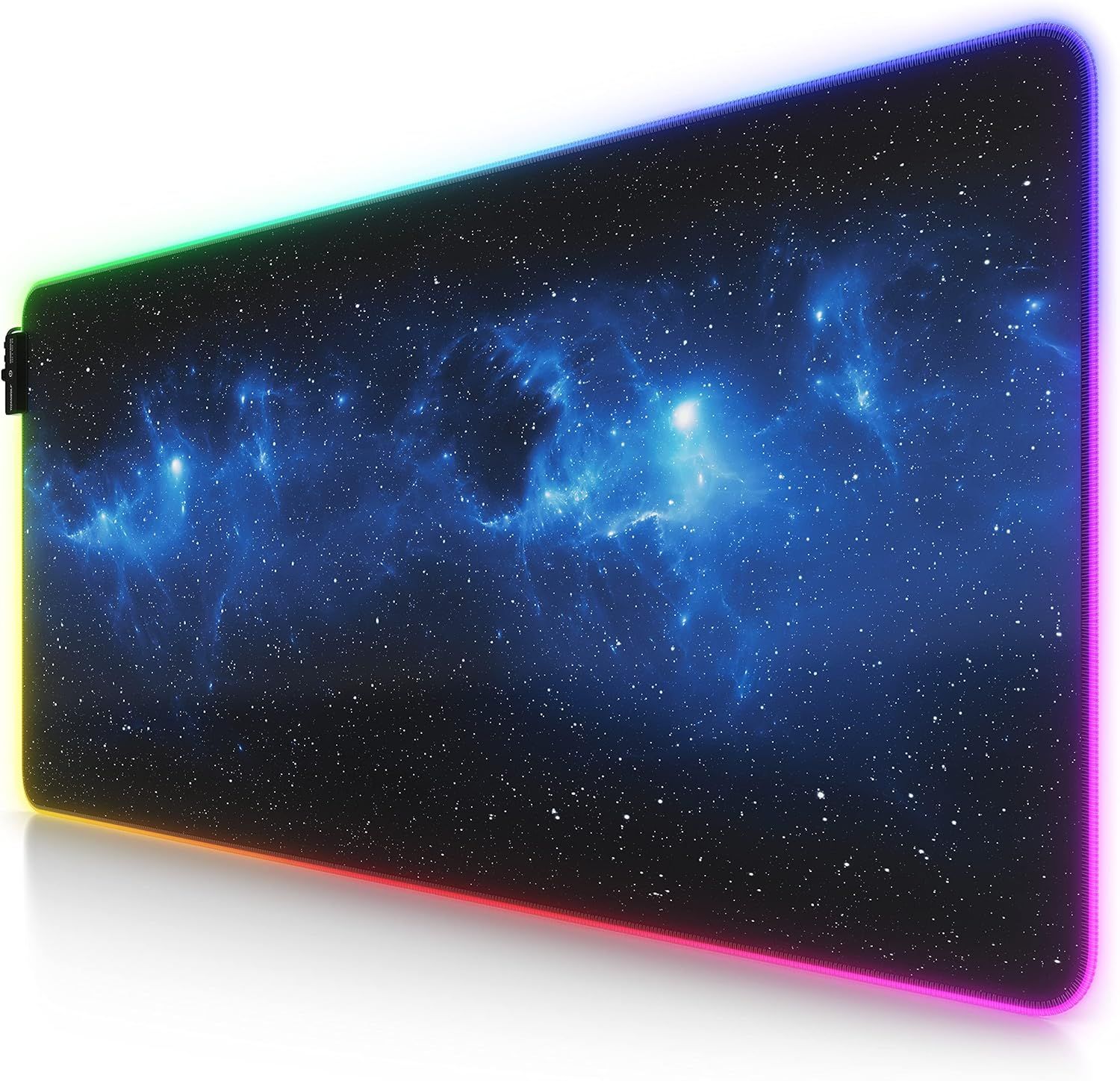 FANSU 3D Univers XXL Tapis de Souris Gaming RGB LED 14 Effets Éclairage Antidérapante Grand sous Main Bureau pour Clavier et Souris, USB- Mouse Pad pour PC Gamer (Ciel étoilé,350x250x4mm)