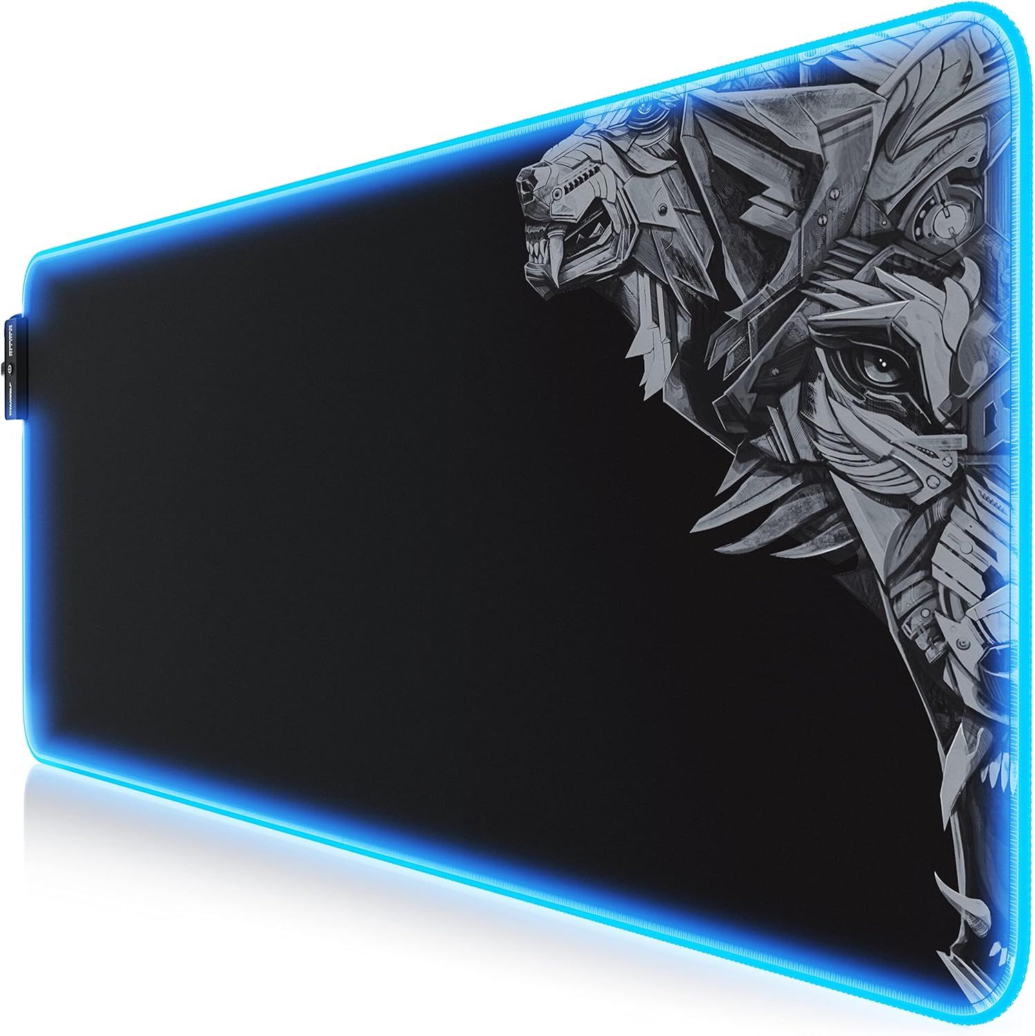 Colorful White Tiger Personalised LED Large Mouse Pad Personalized RGB Gaming Pad Customized XL Extend Mat Waterproof Surface and Base 14 Lighting Modes for Gamers 30x80cm
