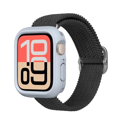 RhinoShield Bracelet Tressé pour Apple Watch Series 11/10 (42mm) + Series 9/8 / 7 (41mm) + Series 6/5 / 4 / SE 3 / SE 2 / SE (40mm) + Series 3/2 / 1 (38mm) | Doux et Extensible - Bleu Givré