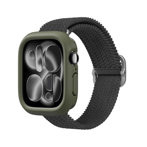 RhinoShield Bracelet Tressé pour Apple Watch Series 11/10 (42mm) + Series 9/8 / 7 (41mm) + Series 6/5 / 4 / SE 3 / SE 2 / SE (40mm) + Series 3/2 / 1 (38mm) | Doux et Extensible - Vert Kaki