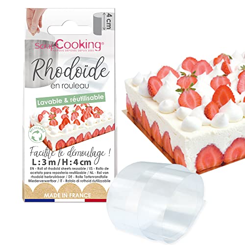 ScrapCooking - Ruban de Rhodoïde H 4 cm x 3 m - Rouleau Rhodoid Pâtissier Transparent - Pour Gâteaux, Entremets, Mousses, Cheesecakes - Feuille Accessoire Pâtisserie - Fabriqué en France - 9423