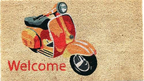 Paillasson en Coco et Fibre de Coco pour intérieur/extérieur | Tapis d'entrée antidérapant coloré Lifestyle (Scooter Ride 45 cm x 75 cm)