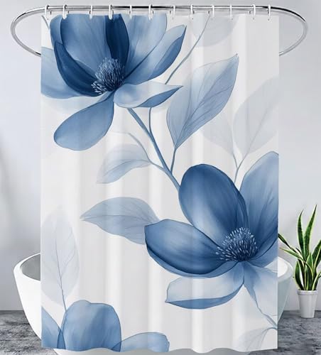 Rideau Douche Bleu Rideau de Douche 180x240 cm Anti Moisissure, Fleur Shower Curtain Tissu Polyester Imperméable Lavable Séchage Rapide Ourlet Lesté, avec 12 Crochets et œillets Antirouille YL#160