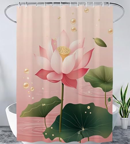 Rideau Douche Rose Rideau de Douche 180x240 cm Anti Moisissure, Lotus Shower Curtain Tissu Polyester Imperméable Lavable Séchage Rapide Ourlet Lesté, avec 12 Crochets et œillets Antirouille YL#168