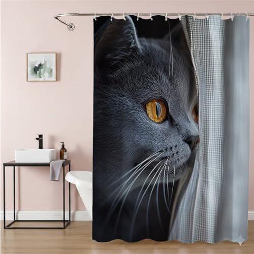 Rideau de Douche Anti Moisissure, Chat Rideau Douche 180x240 cm Imperméable Tissu Lavable en Machine Polyester Shower Curtain avec Crochets pour Salle de Bain, Decoration Jardin Exterieur, Gris 9Q-373