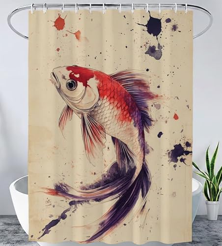Rideau de Douche Anti Moisissure, Rouge Rideau Douche 180x240 cm Imperméable Tissu Lavable en Machine Polyester Shower Curtain avec Crochets pour Hôtel, Decoration Jardin Exterieur, Animal 9Q-204