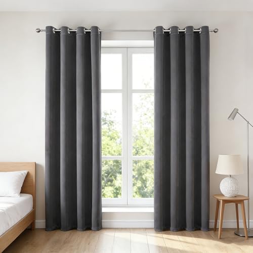 HOKXUAN Rideau Thermique Occultant 260 x 100 cm Thermique Isolant Anti Froid et Chaleur Isolation Lumiere UV Œillets Métal Phonique Rideaux Occultants pour Salon, Gris Foncé