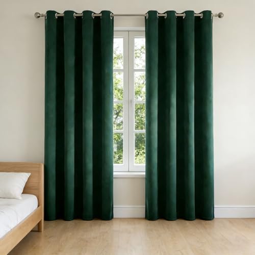 HOKXUAN Rideau Thermique Occultant 260 x 115 cm Économie D'Énergie à Oeillets Bruit Lumière Opaques Polyester Doux et Esthétiques Rideau Occultant pour Salon, Vert Foncé