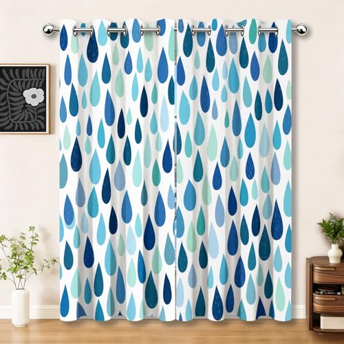 Rideaux Occultants (2 x 140 x 260) Rideau Thermique Gouttes de Pluie de Dessin animé fraîches Isolant Froid et Chaleur – Rideaux à Œillets Phonique Anti-Bruit pour Chambre et Salon Bleu