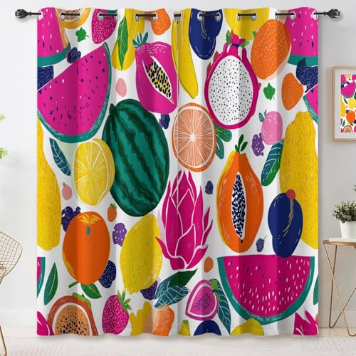 Rideaux Occultants (2 x 140 x 260) Rideau Thermique Dessins animés Fruits Colorés Isolant Froid et Chaleur – Rideaux à Œillets Phonique Anti-Bruit pour Chambre et Salon Couleur