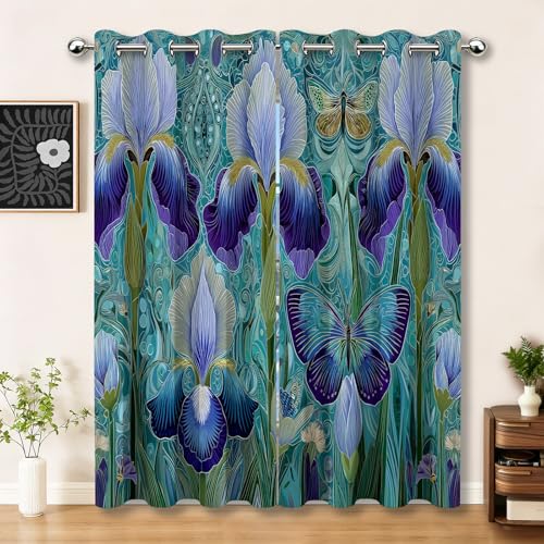 Rideaux Occultants (2 x 140 x 260) Rideau Thermique Art Iris Papillons Isolant Froid et Chaleur – Rideaux à Œillets Phonique Anti-Bruit pour Chambre et Salon Bleu