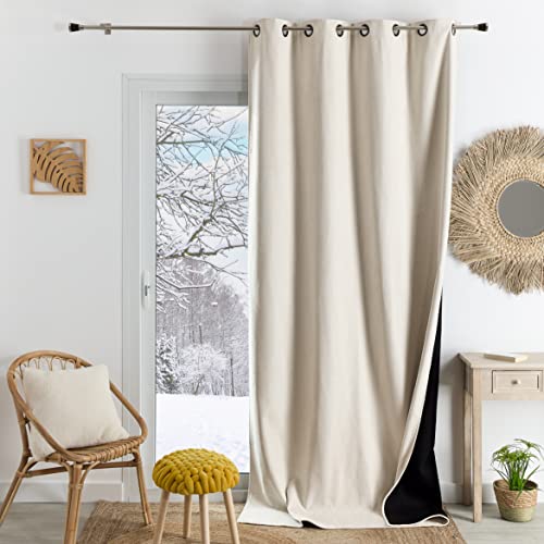 QABANE HomeMaison.COM Rideau Occultant Thermique Phonique - Rideau Blanc cassé - Rideau 140 x 260 cm - Rideau oeillet Canon de Fusil - Rideau Opaque pour fenêtre - Rideau Thermique Isolant Anti Froid
