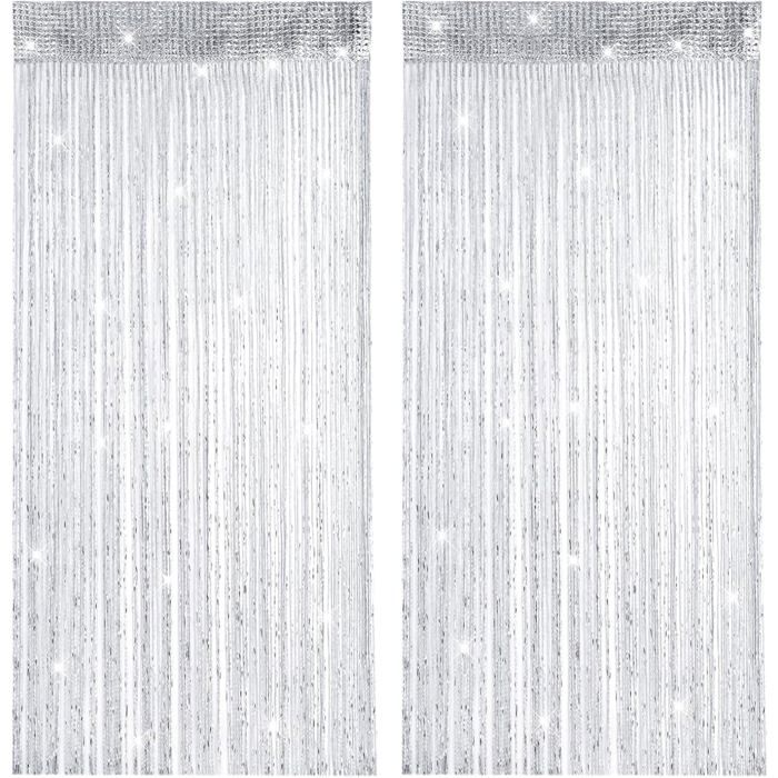 Lot de 2 rideaux à fils, 100 x 200 cm, rideau de porte, séparateur de pièce, protection contre les mouches ou décoration, peut être raccourci, lavable, décoratif, pour fête, mariage, décoration