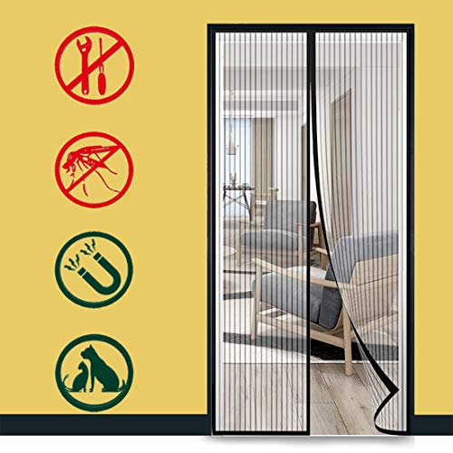 GUOGAI Rideau Aimanté pour, 120x210cm(47x83inch) MagnéTique Rideau De Porte Moustiquaire Porte Fenetre Animaux AcceptéS pour Couloirs, Portes, Noir A