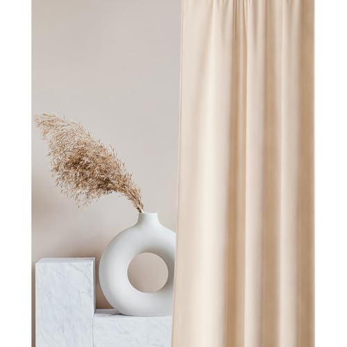 ROOM99 Rideau avec Passe Tringle Laurel 140 x 260 cm Largeur x Hauteur, Décoration de Fenêtre, Rideau Thermique Isolant Anti Froid et Chaleur pour Salon Crème, 1 pièce