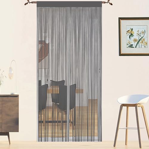 Taiyuhomes Rideau Fil Rideau De Porte en Perles Rideau Anti Mouches pour Porte Exterieur Moustiquaire Rideaux Exterieur Cloison De Séparation De Pièces (Gris, 90x245cm(35x96))