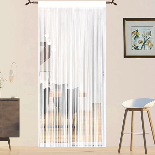 Taiyuhomes Rideau Fil Rideau De Porte en Perles Rideau Anti Mouches pour Porte Exterieur Moustiquaire Rideaux Exterieur Cloison De Séparation De Pièces (Blanc, 90x200cm(35x79''))