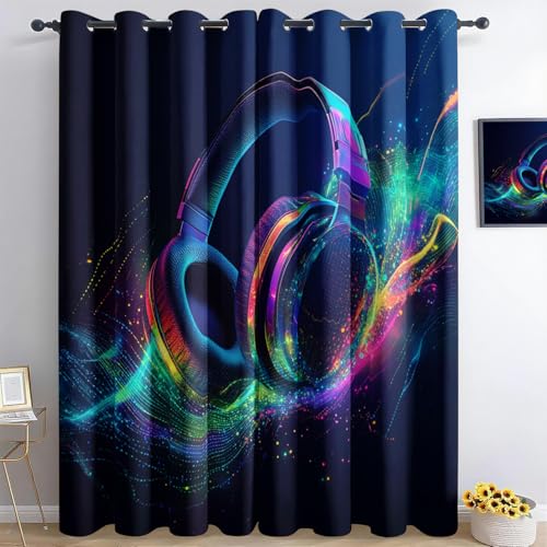Générique Écouteurs De Couleur 3D Imprimé Oeillets Opaque Thermiques Rideau Fenetre Anti Bruit Décoration 150X166Cm pour Salon Cuisine Bébé Rideau Occultant 2 Pièces pour Chambre d'enfant