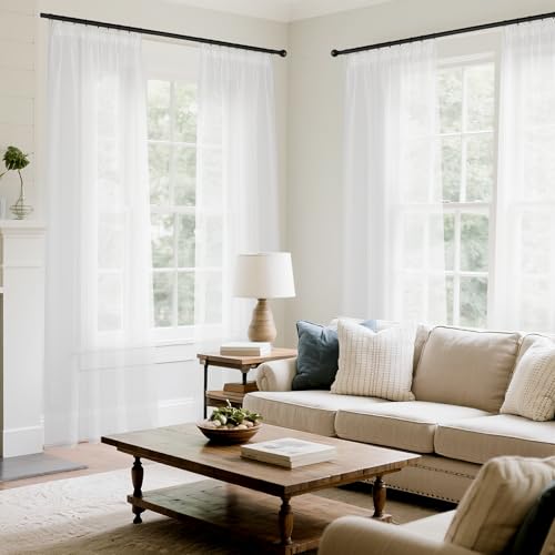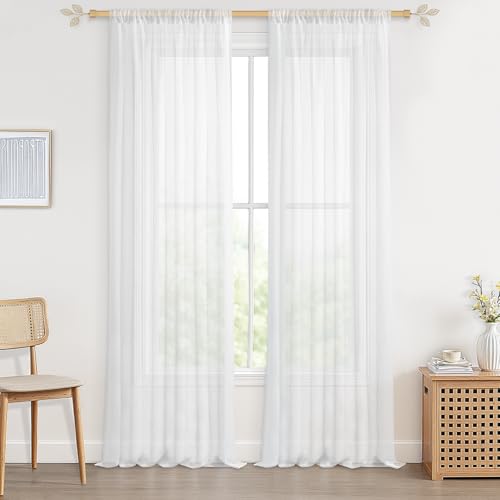 MRTREES Rideau Voilage Blanc en Lin 140x240 CM Rideaux Voilages Fenetre Intérieurs Passe Tringle Rideau Voile Semi-Transparent pour Salon Chambre Salle à Manger Baie Vitrée, Lot de 2