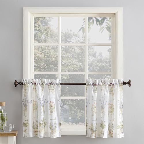 N ° 918 Eve de Jardin Floral de Cuisine Rideau Swag Paire, Lin Polyester, Blanc, 54" x 24"