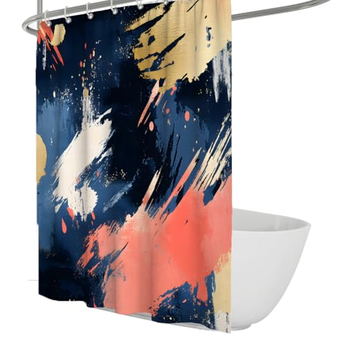 Rideau de Douche en Peinture Abstraite Rideau de Bain Bleu Marine et Corail Polyester imperméable pour la décoration contemporaine de la Salle de Bain Séchage Rapide 120 x 180 cm
