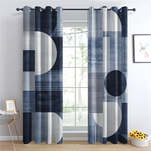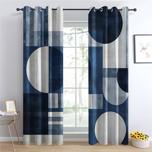 Luxfieo Rideau Occultant Géométrique - Décoration Géométrique, Rideau Thermique Motif Bleu Gris Moderne Abstrait, Lot de 2 Rideaux Opaque à Oeillets pour Fenetre Chambre Salon, 110x215 cm (LxH) U#74