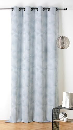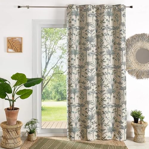 Home Maison Rideau Jacquard Exotique Motif Palmier - 140x260 cm - Rideau Coloris Bleu - Finition Œillets - Prêt à Poser