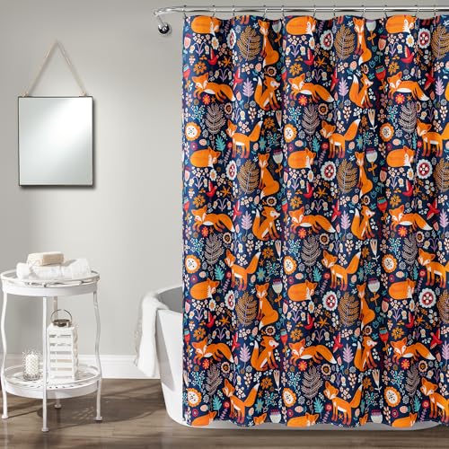 Lush Decor Pixie Fox Rideau de Douche en Tissu Motif Floral Bleu Marine 122 cm