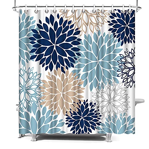 ArtBones Dycica Dahlia Rideau de Douche en Polyester imperméable Motif Floral Bleu Marine Gris Marron 183 x 183 cm