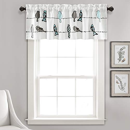 Lush Decor Rowley Birds Cantonnière filtrant la lumière, Panneau Simple, 132,1 cm de Large x 45,7 cm de Long, Bleu et Gris – Motif Floral coloré – Rideau d'oiseaux fantaisiste et ludique – Décoration