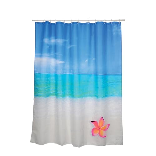MSV Rideau de Douche Polyester 180x200cm Motif Paradise Bleu & Blanc -Anneaux Inclus