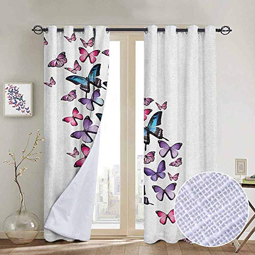 BROSHAN Rideau occultant pour fenêtre en Coton et Lin Isolant Thermique Motif Floral pour Chambre à Coucher, Salon, Violet et et Bleu, 1 Panneau 40 x 23 cm, Picture 3, 55W x 106L inch