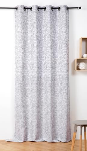 Homemaison QABANE - Rideau d'Ameublement en Jacquard - Tissu Tamisant Motif Ethnique - Œillets Couleur Canon de Fusil - Prêt à Poser avec Recoupe Possible - Salon ou Chambre - 140 x 260 cm - Bleu