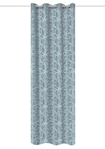 HOME WOHNIDEEN Rideau à œillets Lenny, Motif Jacquard Cercles, 245 x 140 cm, Opaque, Couleur : Bleu, Dimensions : 245 x 140 cm, Nombre : 1