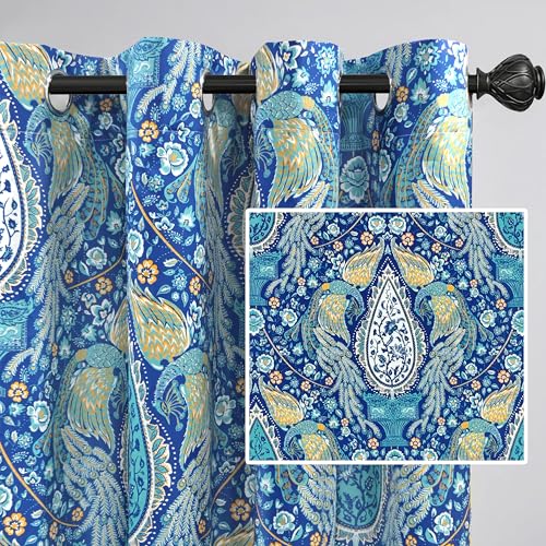DriftAway Christopher Paon Floral Motif Floral Économie d'énergie Isolation Thermique Rideau de fenêtre Occultant 2 Couches 2 Panneaux 132 cm x 213 cm Bleu Sarcelle